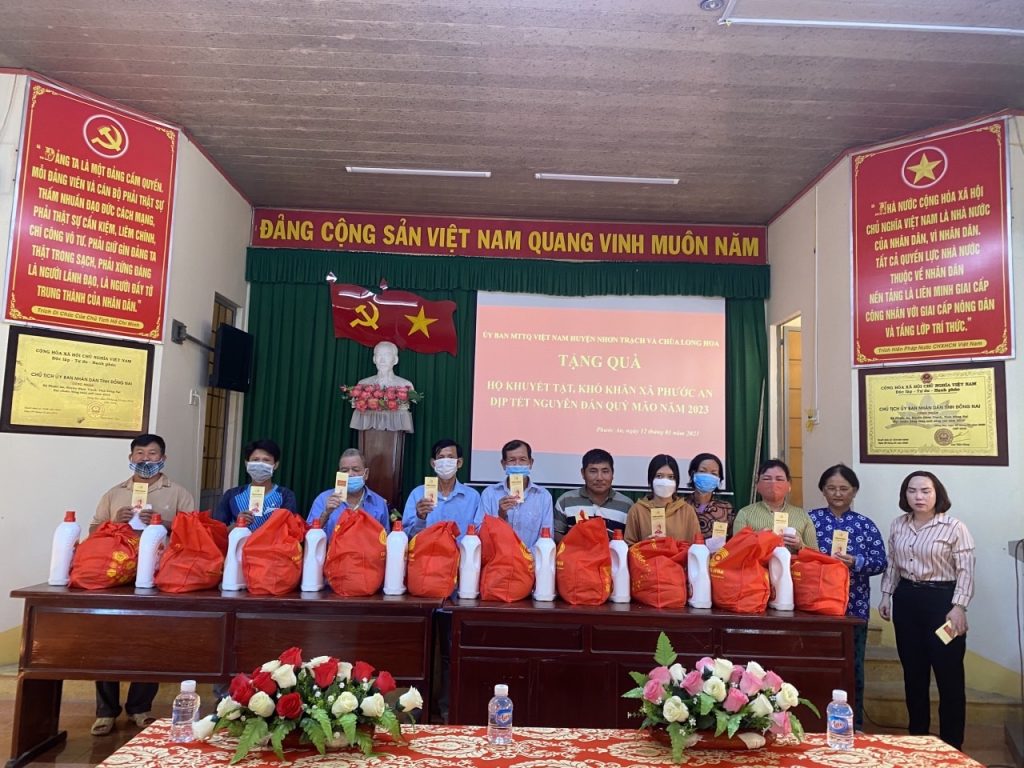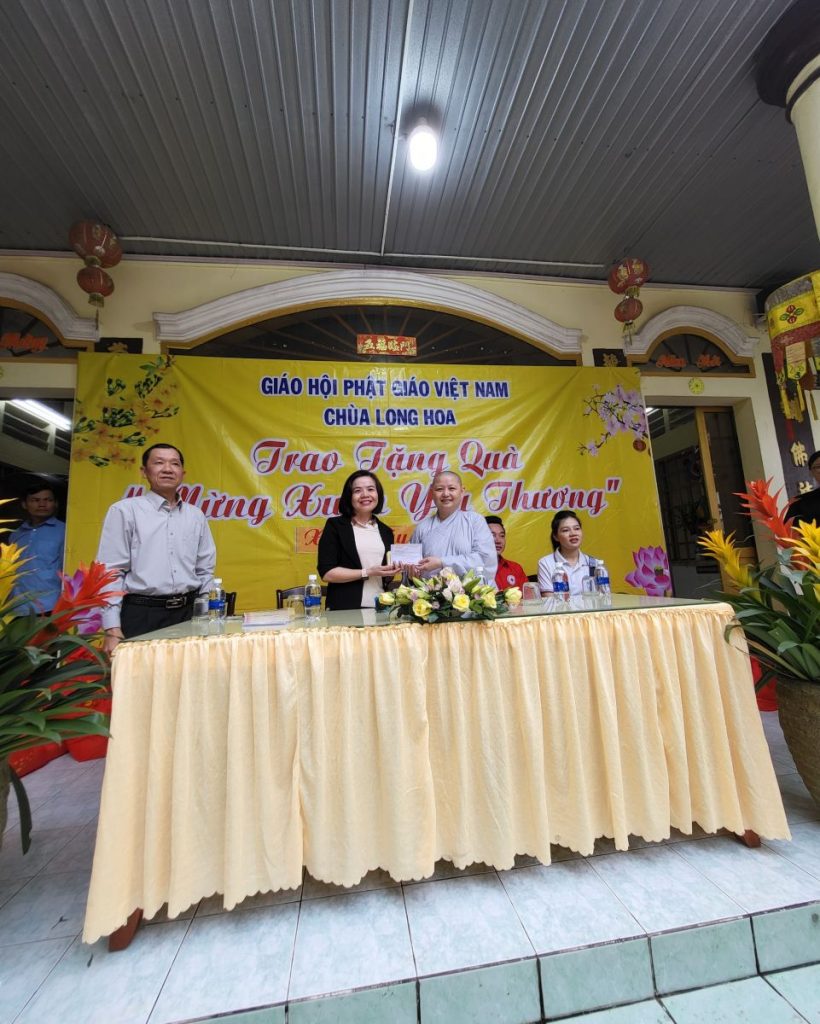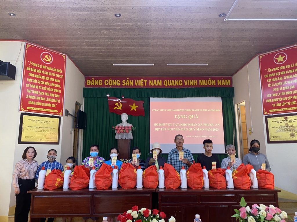 Trên tinh thần phụng đạo giúp đời, chiều hôm nay, vào lúc 16 giờ, chủ nhật ngày 08/01/2023 – 17/12/ Nhâm dần, Chùa Long Hoa (222, Đ. Hùng Vương, KP Phước Mỹ, thị trấn Hiệp Phước, huyện Nhơn Trạch, tỉnh Đồng Nai), trân trọng tổ chức lễ trao tặng 200 phần quà “Mừng xuân yêu thương” đến người người neo đơn huyện Nhơn Trạch, đặc biệt là thị trấn Hiệp Phước, mỗi phần là giá trị 350.000đ, gồm nhu yếu phẩm và bao thư 100.000đ tiền mặt, tổng kinh phí là 70.000.000đ.