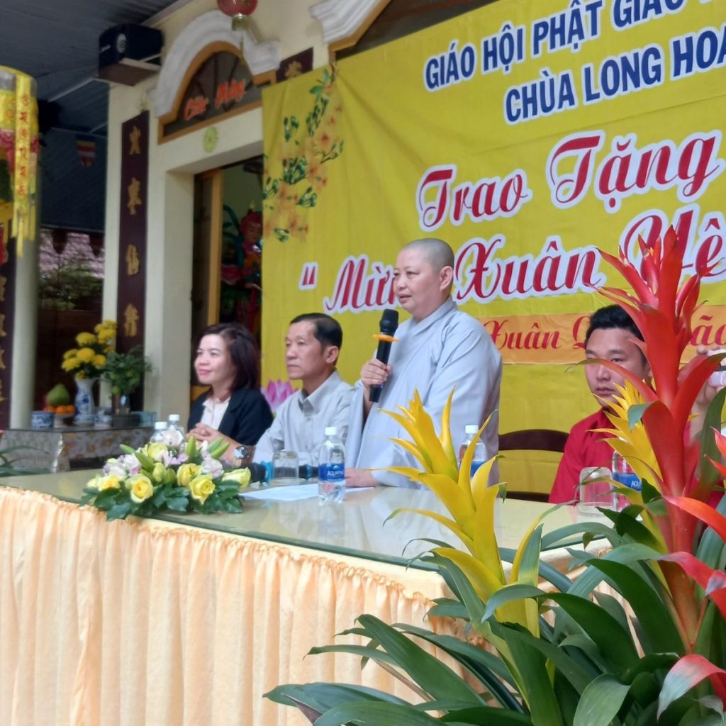 Mở đầu chương trình là lời hỏi thăm vấn an sức khỏe, lời khai mạc của Ni sư trụ trì đến toàn thể đại biểu và quý bà con hiện diện, tiếp theo là lời phát biểu của đại diện chính quyền địa phương của Ông Trần Thanh Hòa, ông đã đánh giá cao về những việc làm hữu ích của đạo tràng đã kịp thời đến với người dân khi cần thiết nhất, và mong chùa Long Hoa cùng với chính quyền địa phương làm tốt công tác an sinh xã hội và cũng là chủ trương của chính phủ đã đề ra năm 2023.